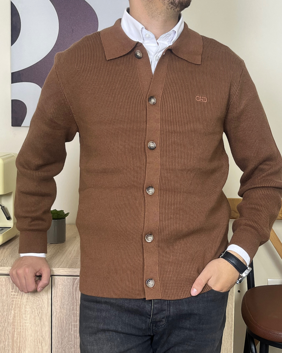 Cardigan Salvatore Ferragamo en maille côtelée 100% coton, offrant confort, respirabilité et tenue impeccable. Coupe élégante avec boutonnage raffiné et logo brodé discret. Une pièce premium, idéale pour un style chic et soigné au quotidien.