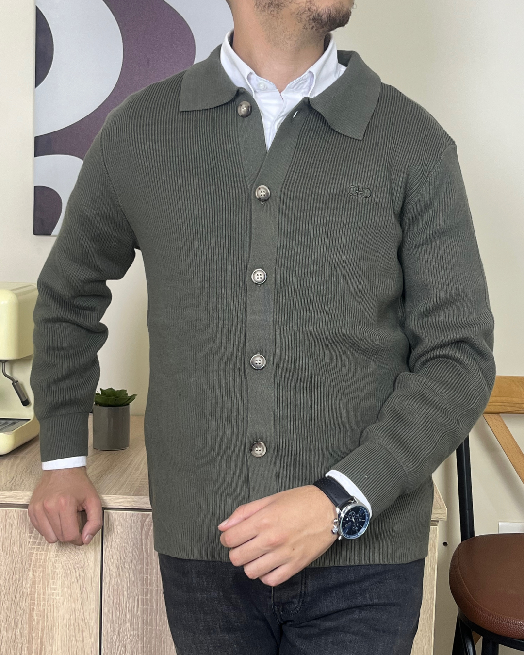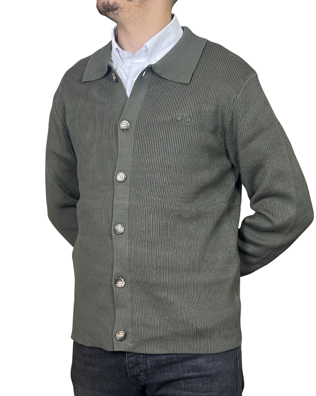 Cardigan Salvatore Ferragamo en maille côtelée 100% coton, alliant confort et élégance naturelle. Sa teinte vert olive apporte une touche moderne et raffinée, facile à associer pour un style chic décontracté au quotidien. Boutonnage soigné et logo brodé discret pour une finition premium.